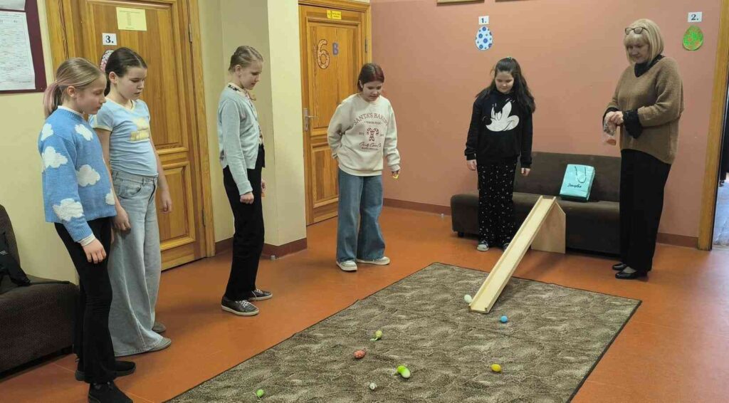 Skolēni ar lielu aizrautību piedalījās 15 dažādās radošās darbnīcās – tika minētas asprātīgas mīklas, gatavoti Lieldienu dekori, risināti uzdevumi par “zaķu gramatiku” un atminēti seni Lieldienu ticējumi. Protams, neiztika arī bez tradicionālās olu ripināšanas.