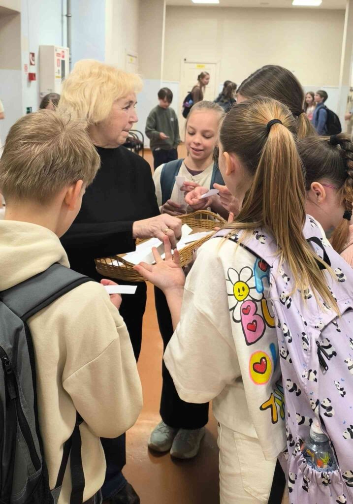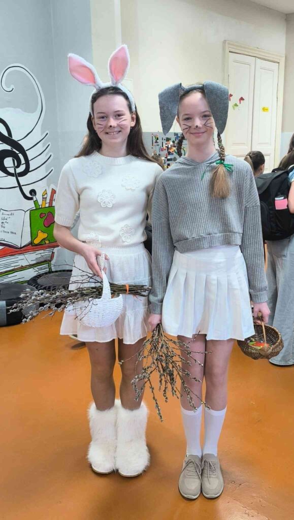 Par īpašu pārsteigumu parūpējās divas čaklas zaķu meitiņas, kuras priecīgi cilpoja pa skolu un cienāja skolēnus ar šokolādes oliņām par veiksmīgi paveiktiem uzdevumiem.