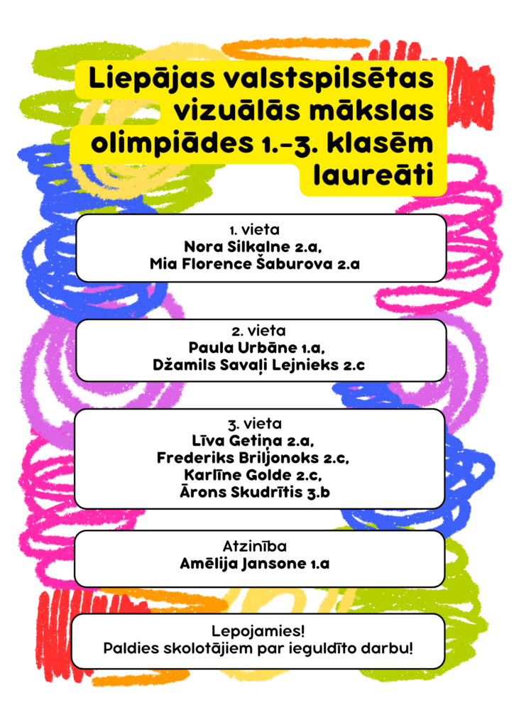Liepājas valstspilsētas vizuālās mākslas olimpiādes 1.-3. klasēm laureāti