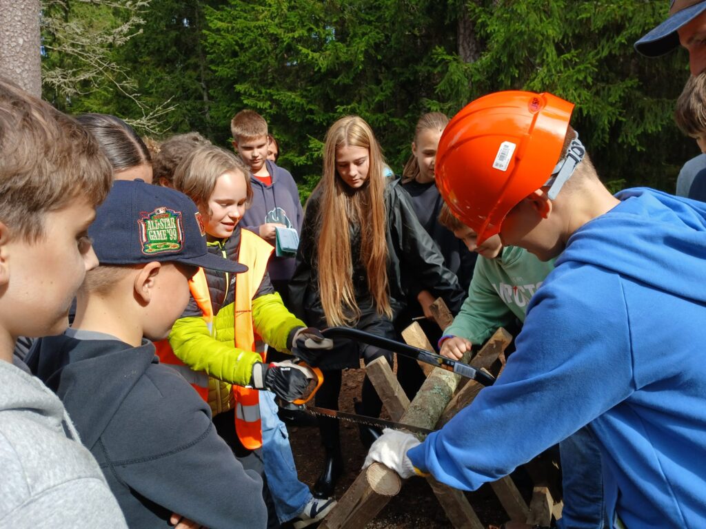 “Meža ekosistēmas” nodarbībā – skolēni devās 3 stundu pastaigā pa norādītu maršrutu mežā, kurā bija 10 dažādas stacijas. Tajās LVM speciālists iepazīstināja ar meža ekosistēmu un tā augšanas ciklu. Skolēni šajās pieturās mācījās: orientēties mežā, iepazīt mežziņa profesiju,  jaunaudzes un meža izveidi un kopšanu, koksnes pielietošanu un dabas aizsardzību, kā arī praktiskā uzdevumā būvēja tiltu, kura stiprību bija jāpārbauda pašiem būvētājiem.